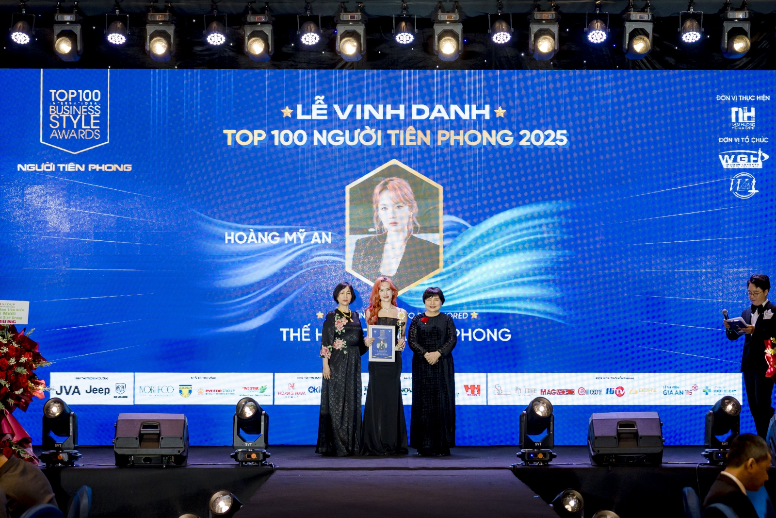 Hoàng Mỹ An - Founder Công ty Art Lab Entertainment, là gương mặt được biết đến trong lĩnh vực nghệ thuật biểu diễn với vai trò kiện tướng dancesport và ca sĩ. Song song với hoạt động nghệ thuật, Hoàng Mỹ An đã chính thức tham gia điều hành doanh nghiệp, từng bước xây dựng mô hình kết hợp giữa sáng tạo nghệ thuật và quản trị kinh doanh với doanh nghiệp của riêng mình mang tên Art Lab Entertainment. Việc vinh danh Hoàng Mỹ An thể hiện sự ghi nhận đối với thế hệ kế thừa trẻ đang chủ động mở rộng không gian phát triển trong lĩnh vực công nghiệp sáng tạo.